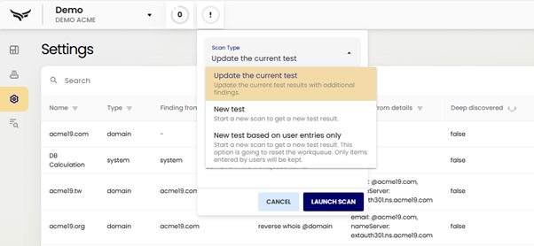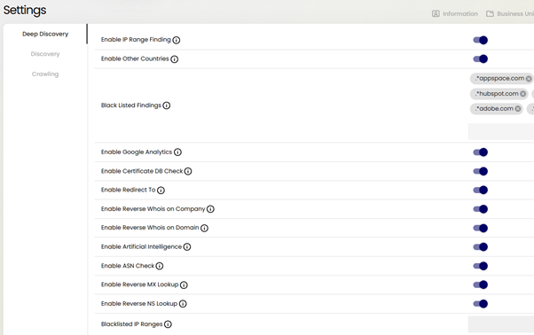 - Deep Discovery – a more dynamic scan exploring everything related to your company, giving you a broader view of your digital footprint.