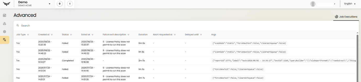 - Advanced – Where you can see if jobs have successfully completed, how long they took and why they might not have achieved the desired outcomes.