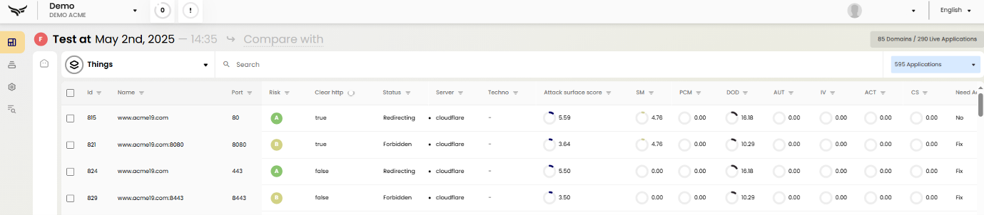Reports can now also be exported directly from the Things Module view. Users can filter on any of the columns in this view, for example “Applications with Risk Score D and F which are online”.