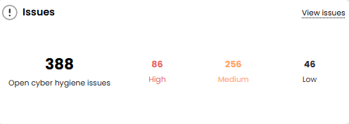 Finally, under the “Issues” tab, users are shown all issues detected for the application, domain etc as well as steps to take to remediate. In this table, columns include: