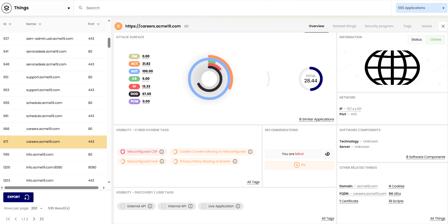 ThingsRecon Discovery provides comprehensive visibility and control over your organisation's external-facing assets, equipping you to find and deal with potential and hidden risks.