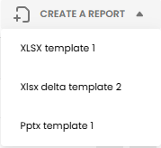 If no templates exist, this view will be empty. To create a template, click the ‘Create a Report Template’ button in the top-right corner, then choose one of the three Report Categories from the drop-down menu.