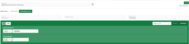 Remediation plan: Template report providing guidance on applications and software so that remediation can be properly prioritised. While the top-level parameters are preset in this template, rules and filtering can be applied by the user.
